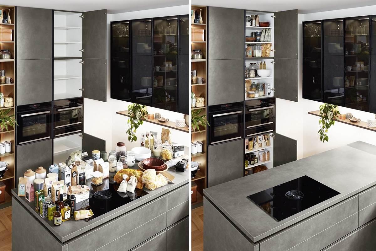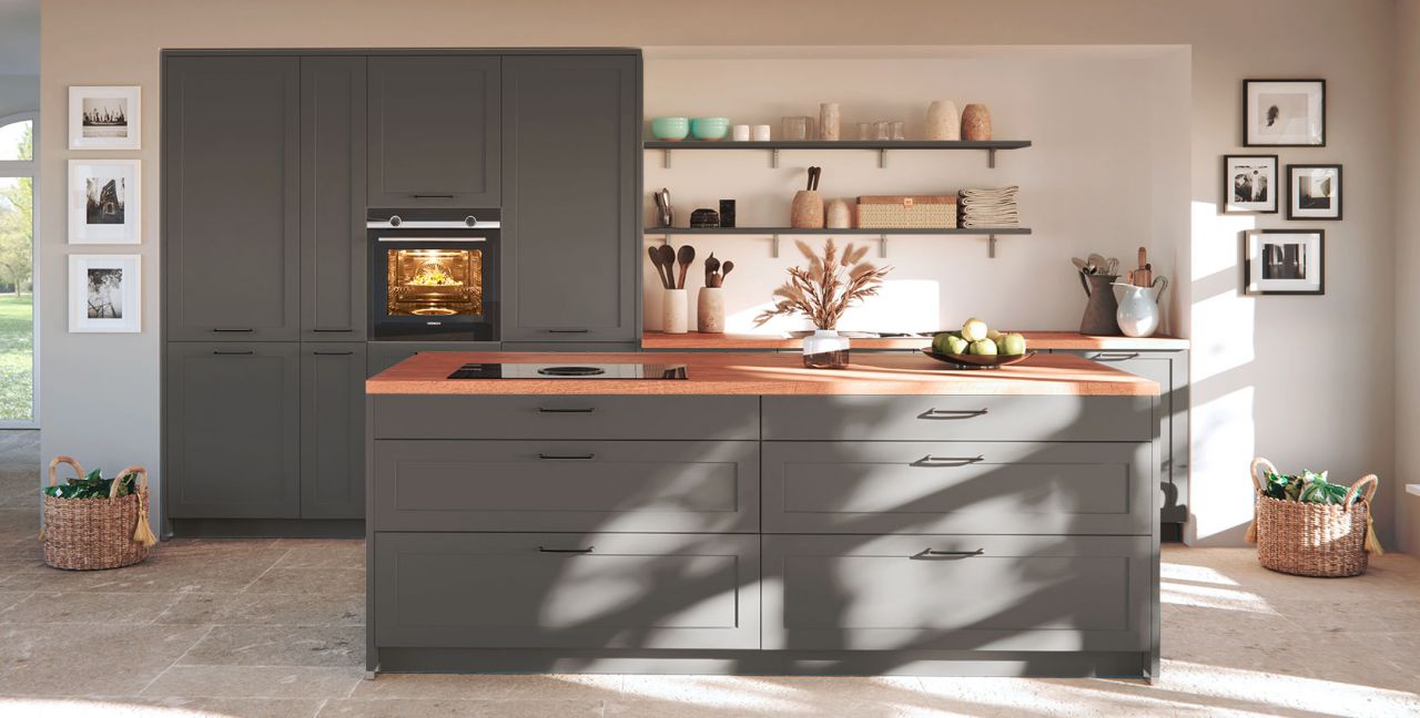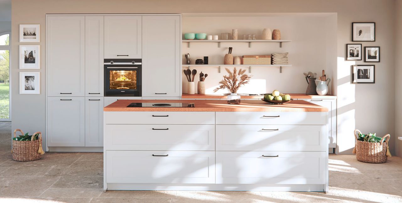 Inklusive Einbaubackofen Edelstahl Siemens HB510ABR1 Energieeffizienzklasse A, Glaskeramik Kochfeld mit Induktion und Kochfeldabzug (Umluft) Bora GP4U, Kühlschrank Laurus LKG88E Energieeffizienzklasse E, Geschirrspüler vollintegriert Laurus LSV60-4 Energieeffizienzklasse E, Einbauspüle Edelstahl Rodi Okio Line 85 Deep, XL-Schränken, Unterschränken mit Frontauszügen, Wandborden.